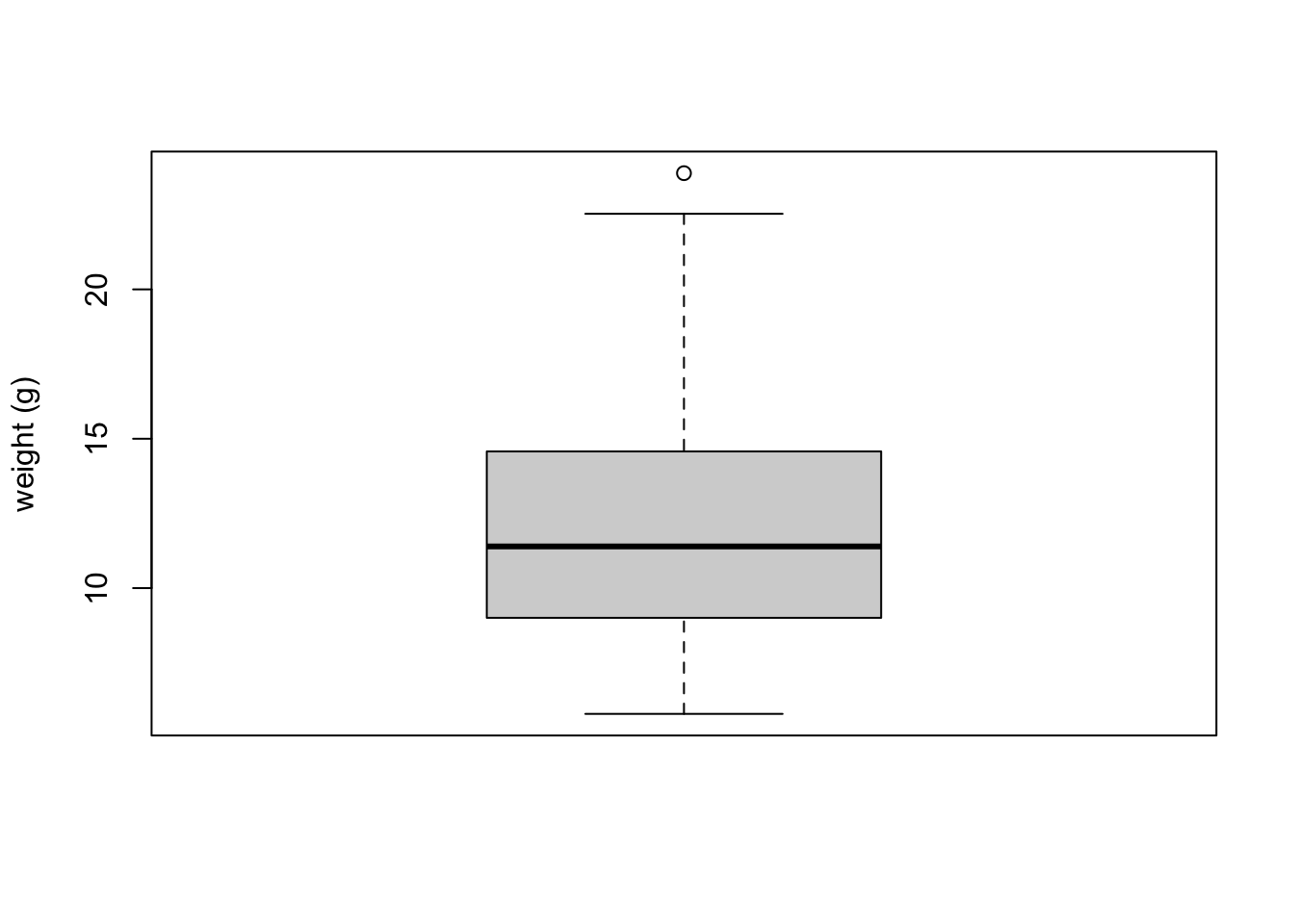 boxplot(flowers$weight, ylab = "weight (g)")