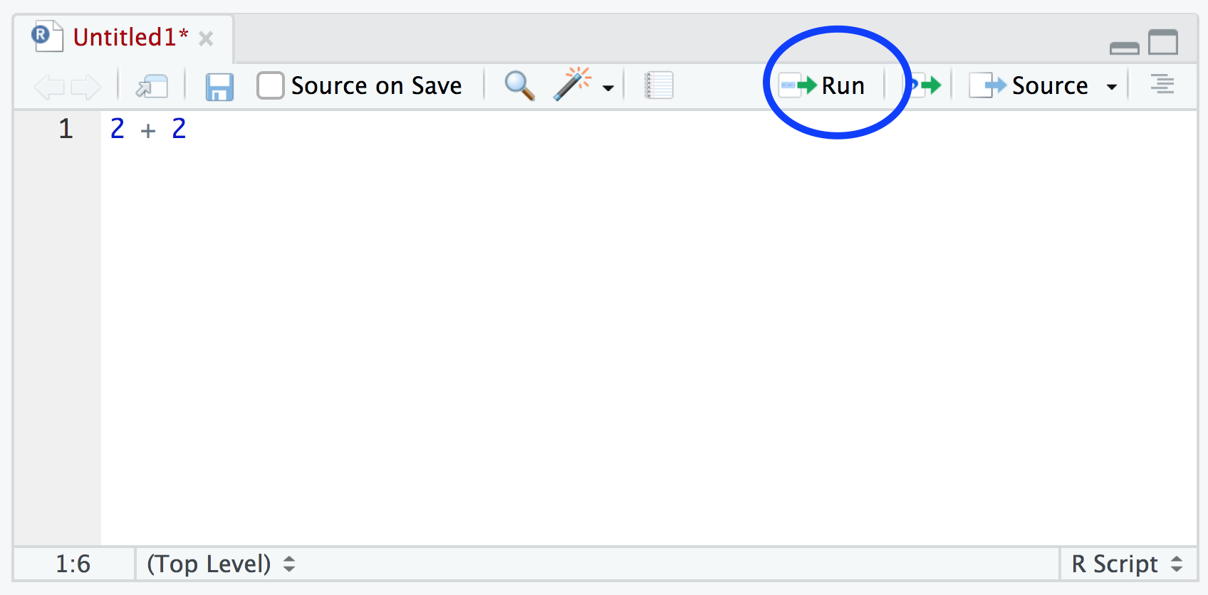 To source your code from your script editor to the Console simply place your cursor on the line of code and then click on the ‘Run’ button in the top right of the script editor pane.